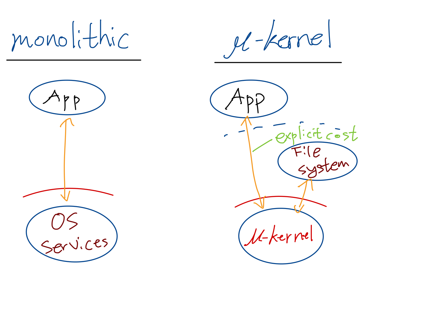 확장성은 좋아졌지만 Monolithic 구조에 비해서 OS Service를 사용하는데 Border Crossing cost가 여러 번 발생하는 문제가 있다.